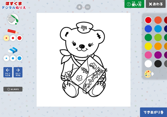 - ぽすくまデジタルぬりえ(以下、「ツール」)は、Webブラウザ上でイラストに色をつけ、ぬりえを楽しんでいただくものです。