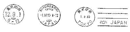 左:和文ハト印 中:欧文ハト印 右:機械ハト印