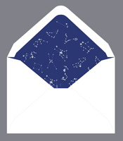 切手シートに加え、星座等の解説冊子、星図をデザインした一筆箋や封筒をセットにしました。
