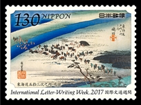 これまでにも、「国際文通週間にちなむ郵便切手」として、「東海道五拾三次」を題材としており、46の宿場等をデザインした郵便切手を発行してきました。