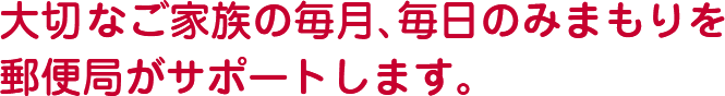 - ケガの入院補償や、健康面で困ったときに24時間いつでも相談できる電話窓口が心強いです。また、郵便局の人が訪問してくれたときに、切れた電球を交換してくれてこともあり助かりました。