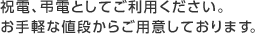 窓口からのお申し込みより100円おトク!※ 2枚目以降の加算料金も窓口より更におトク!! (※白黒通信文でお申し込みの場合) |
