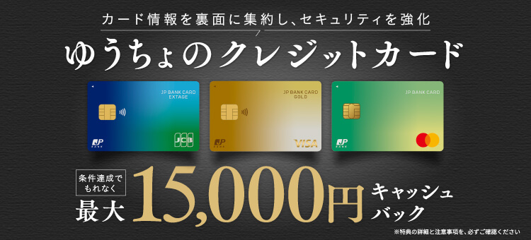 JP BANK カードでは、最大15,000円をキャッシュバックする入会特典をご用意しております。ぜひこの機会にご入会ください。