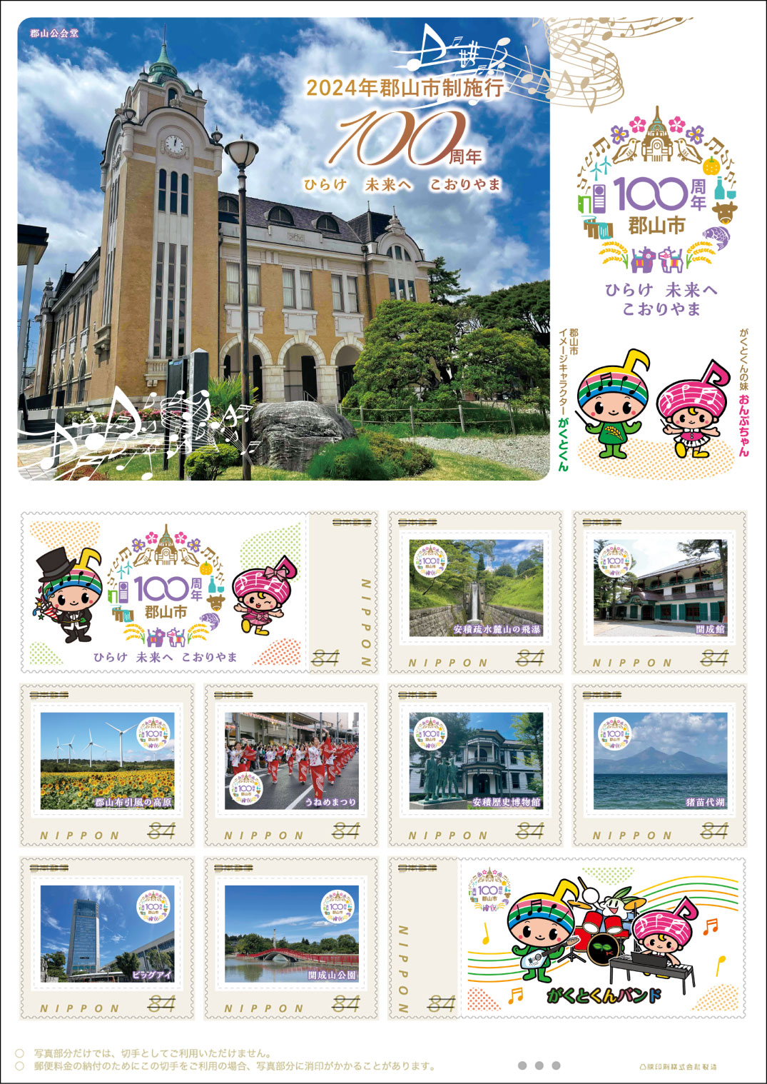 オリジナル フレーム切手「2024年郡山市制施行100周年 ひらけ 未来へ こおりやま」の販売開始および贈呈式の開催
