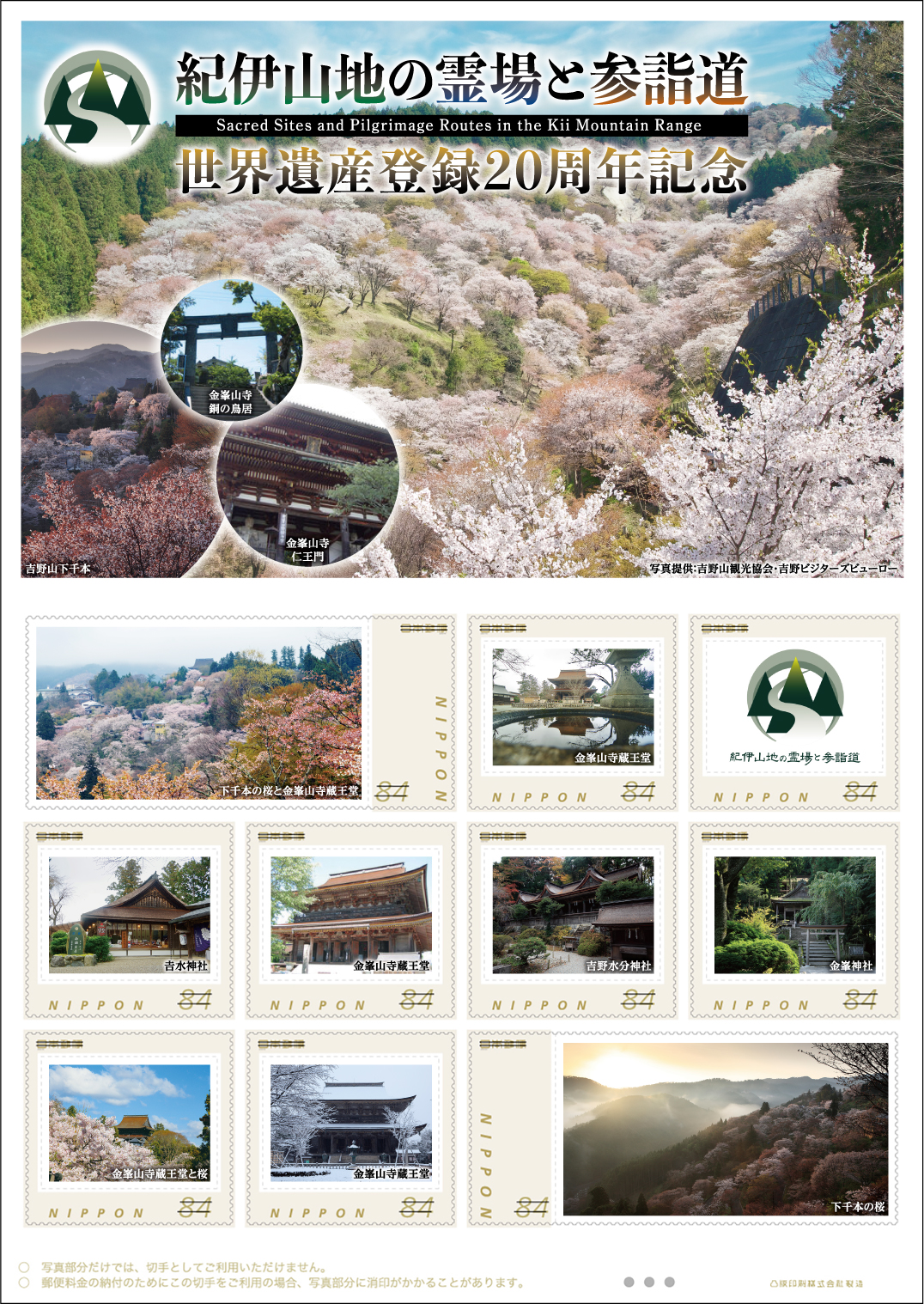 オリジナル フレーム切手「紀伊山地の霊場と参詣道 世界遺産登録20周年記念」の販売開始