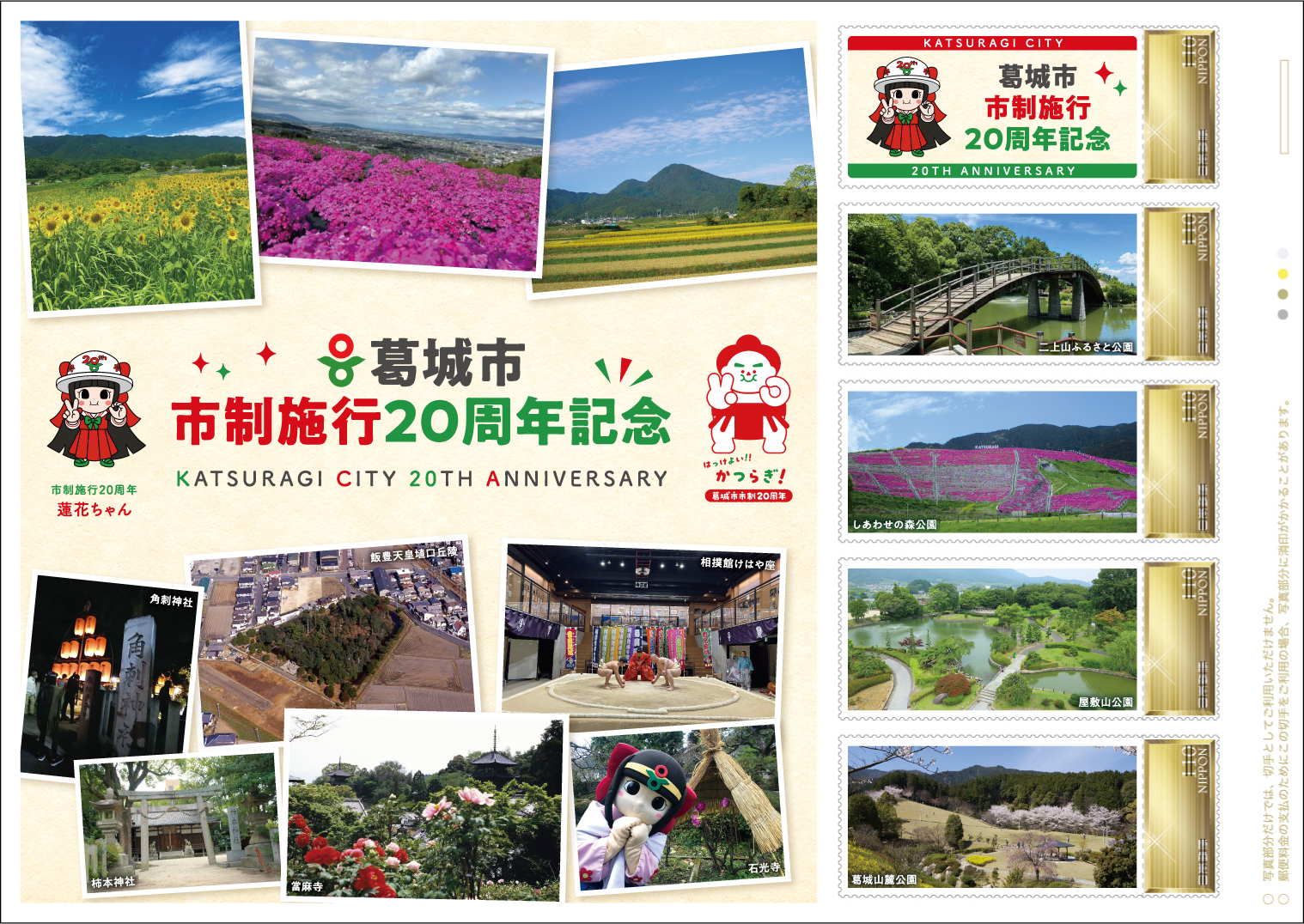 オリジナル フレーム切手「葛城市 市制施行20周年記念」の販売開始