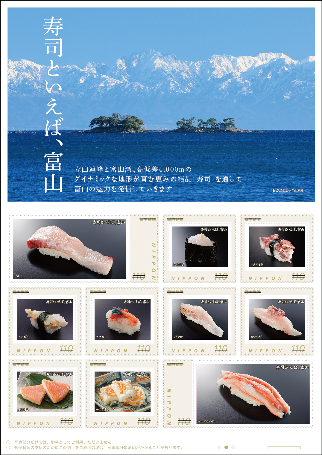 日本郵便株式会社北陸支社(石川県金沢市、支社長 加納 聡)は、2024年10月24日(木)から、オリジナル フレーム切手「寿司といえば、富山」を販売開始します。
