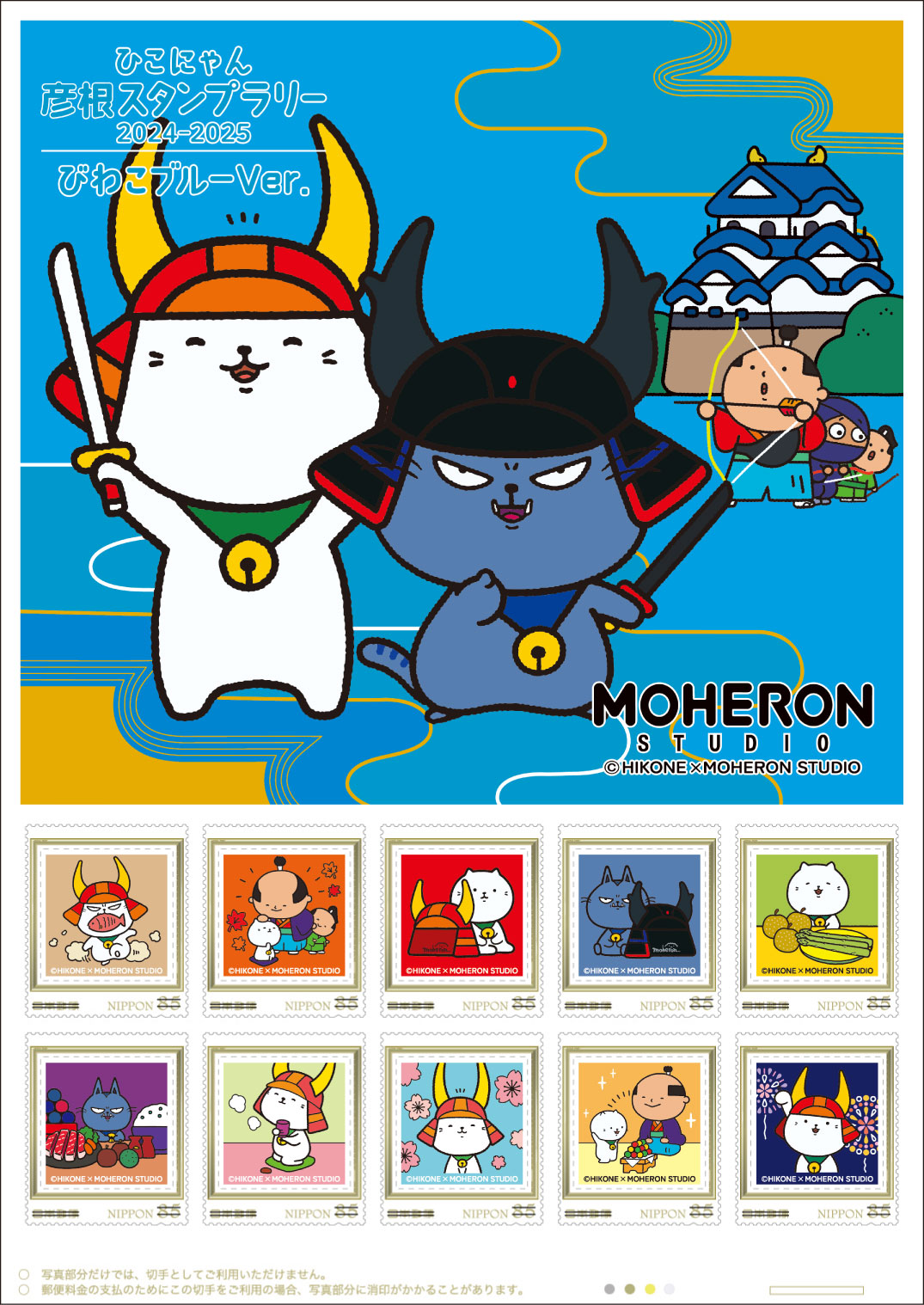 オリジナル フレーム切手「ひこにゃん彦根スタンプラリー2024-2025 びわこブルーバージョン」の販売開始