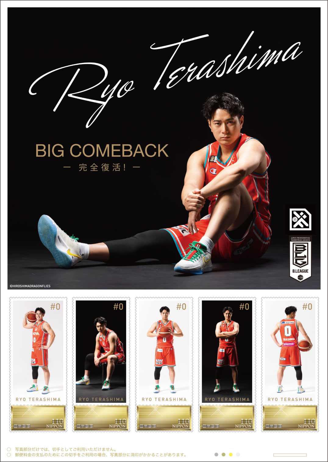 このオリジナル フレーム切手はプロバスケットボールクラブ「広島ドラゴンフライズ」所属の寺嶋良選手が、長期離脱から約10か月ぶりに完全復帰したことを記念して作成したもので、下記の郵便局で限定販売します。