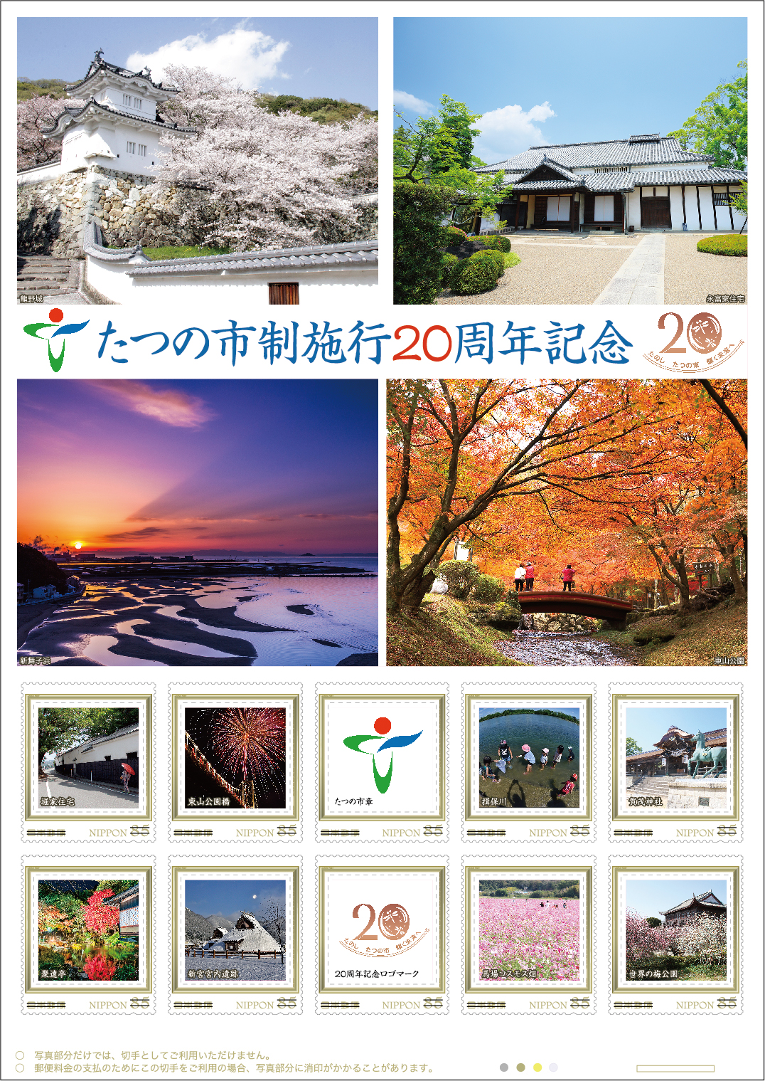 オリジナル フレーム切手「たつの市制施行20周年記念」の販売開始
