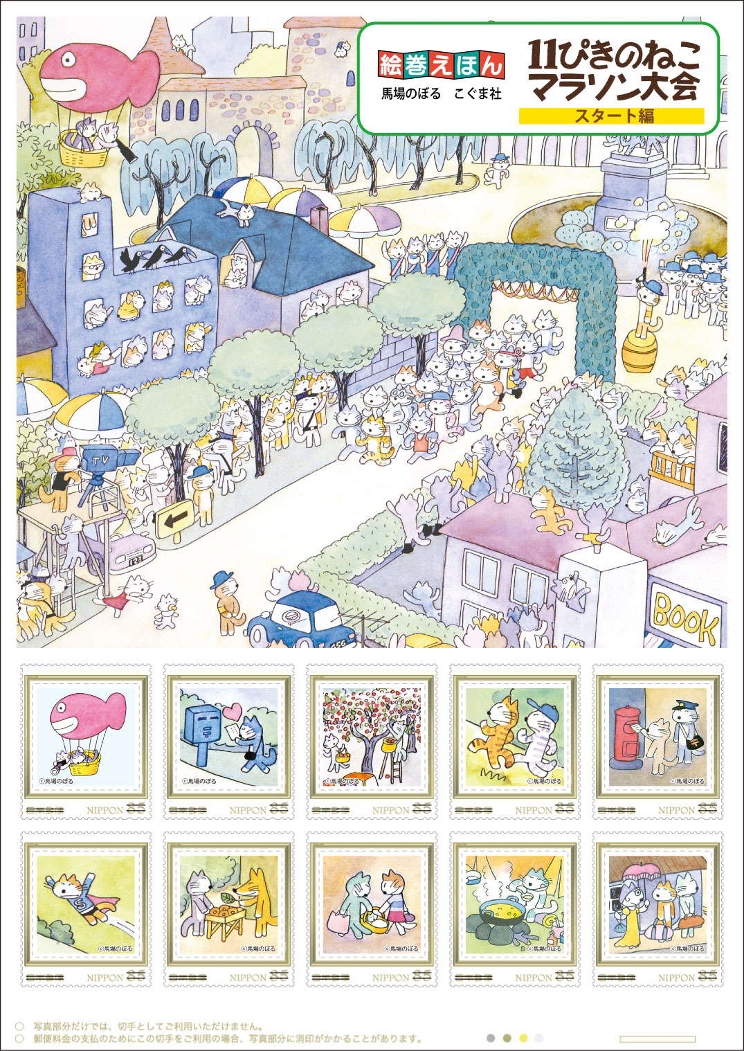 オリジナル フレーム切手「絵巻えほん 11ぴきのねこマラソン大会 スタート編」の販売開始および贈呈式の開催