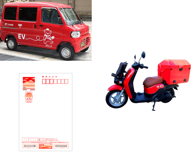 郵便物や荷物を配達する車両として、2024年度末までに、東京都を中心とした近距離エリアにおいて、郵便物や荷物の配送時に使用する軽四輪自動車約8,000台および郵便配達で使用する自動二輪車など約23,800台をガソリン車からEVに切り替え済です。