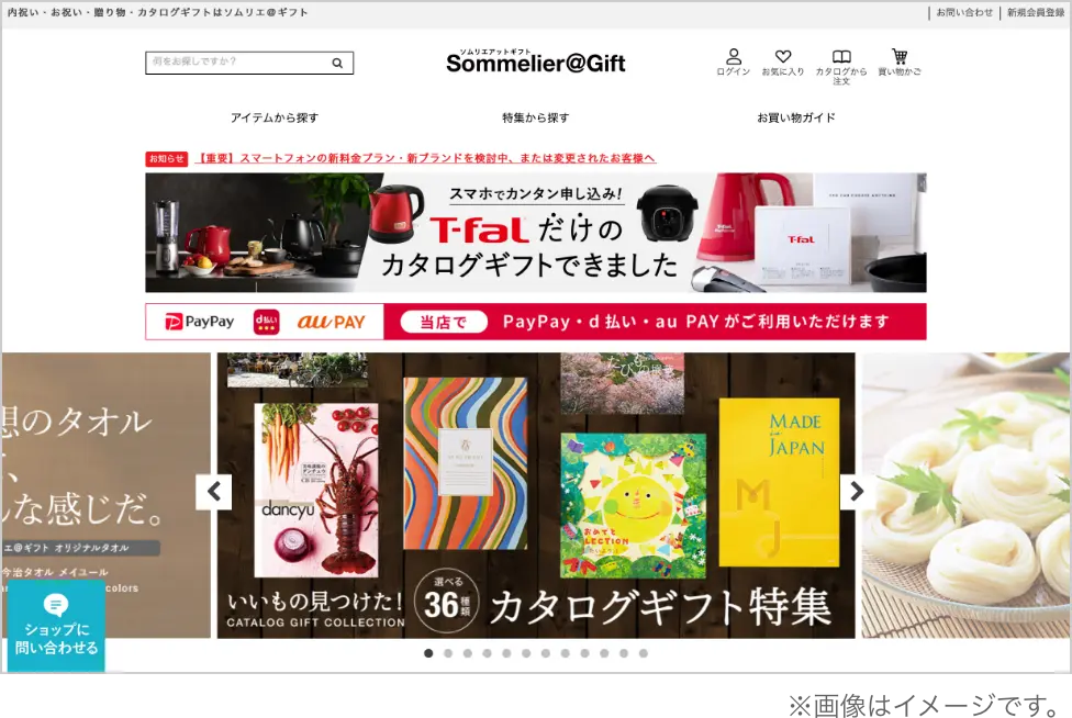 内祝いからシーズナルギフト、日常的な贈り物まで幅広いギフト商品を販売するECサイト『ソムリエ@ギフト』。