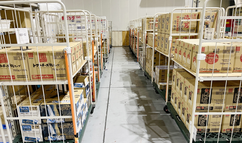 丸忠笠井海産さま倉庫内での梱包作業と香川LSC内でのロジスティクス作業の様子