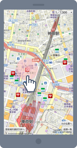 ご利用方法は、とても簡単です。商品を購入する際に、地図で受け取りたい場所を選択するだけ。
