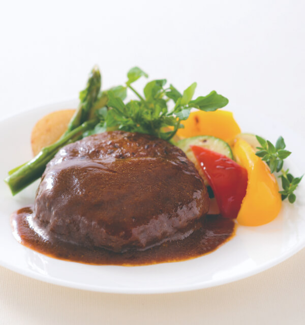 ジューシィで贅沢なハンバーグを、こだわりのデミグラスソースとともにお召しあがりください。
