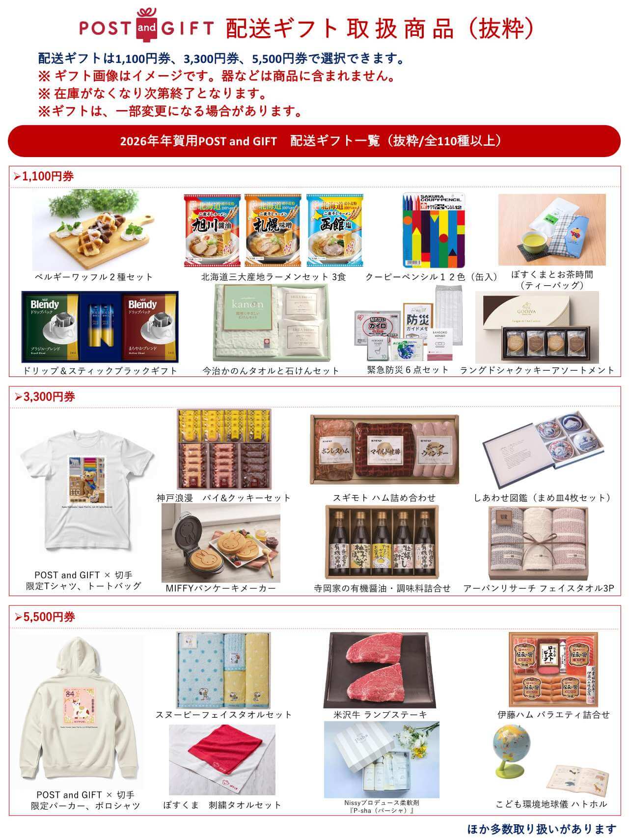 弊社WEBサイト、弊社が作成した印刷物又はギフト申込サイトで公表したギフトについて、以下の場合があります。
