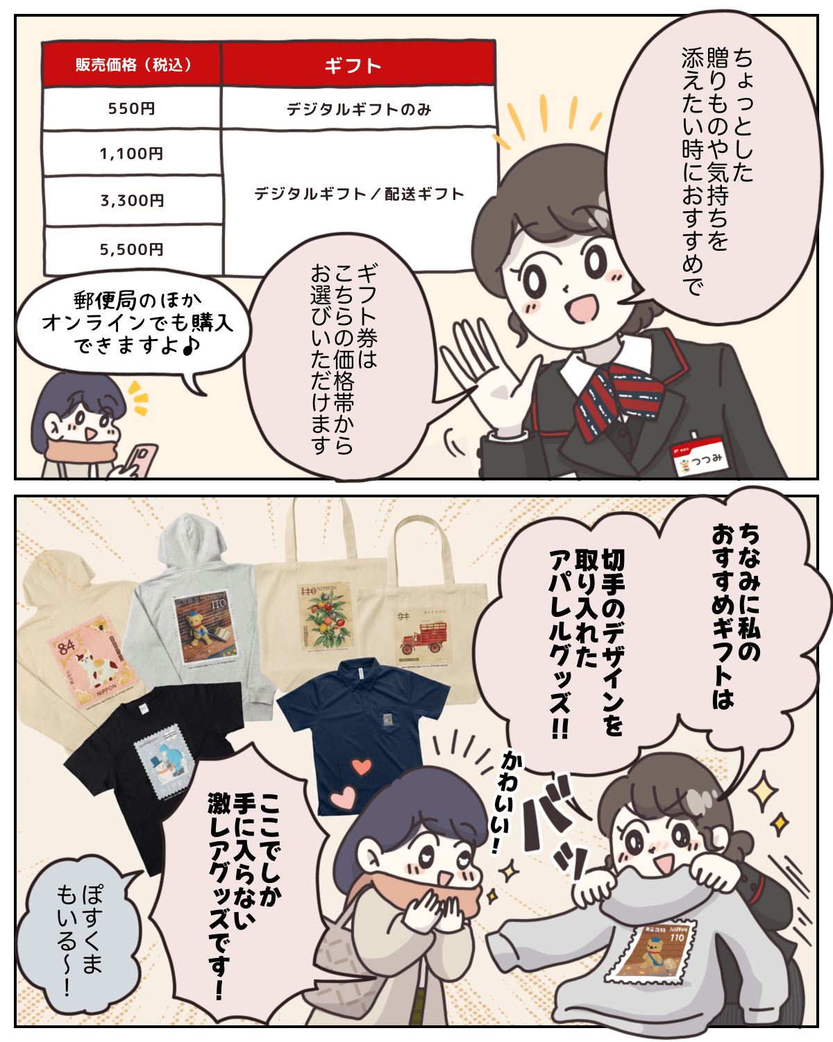 ギフト一例(デジタルギフト、配送ギフト・「着る切手」シリーズ)