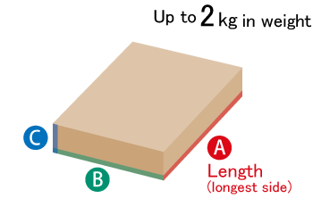 Documents : 150 sheets of B4 paper = Approx. 1kg Letter : Envelope + 1 sheet of letter paper = Approx. 10g Postcard : 1 sheet = Approx. 5g Package (parcel) : 1 cardboard box (size M) = 20kg at maximum Printed items : Paperback (270 pages) = Approx. 150g; Magazine = Approx. 600g The above figures are rough indications. Please use them as a reference.