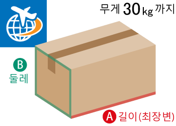 서류…B4용지 약 150장 = 약 1kg 편지…봉투+편지 1장 = 약 10g 엽서 1장…약 5g 짐 (소포) 1박스 (M사이즈) = 최대 약20kg 인쇄물…문고 (270 페이지) = 약 150g, 잡지 = 약 600g 위의 수치는 기준을 위한 것이므로 참고로 봐 주시기 바랍니다.