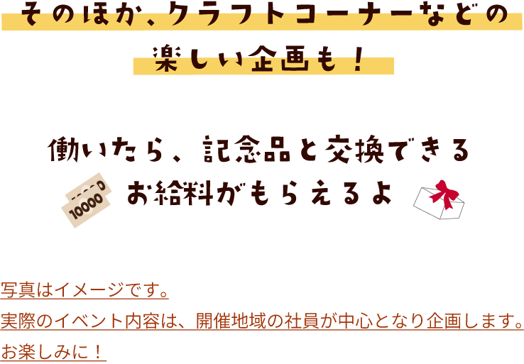 恐竜博物館・永平寺などの福井の名所やおなじみの場所を舞台とした配達、手紙の引き受け・区分など、郵便局のお仕事を体験しよう! 福井の誇る「越前和紙」でみんなの力を合わせてアート作品を完成させよう! お仕事をするとお給料がもらえるよ!さらに最後にはお楽しみも! 他には、世界に一つだけのオリジナルゆうパック箱作りクラフト体験、郵便配達の車との記念撮影など盛りだくさん! |