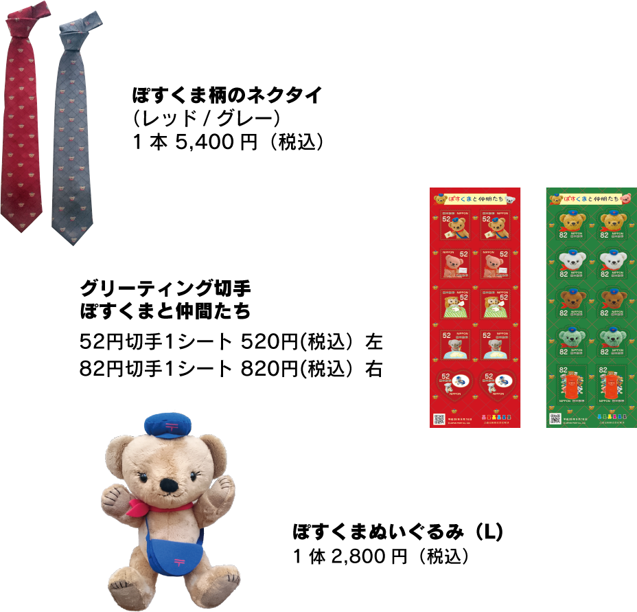 ぽすくまファン必見!ぽすくまオリジナルグッズや新発売の特殊切手など、楽しい商品が勢ぞろい!