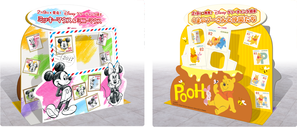 2月9日(木)のグリーティング切手販売開始記念として、ディズニーキャラクター「ミッキーマウス& ミニーマウス」と「くまのプーさんと仲間たち」のスペシャルフォトスポットが名古屋中央郵便局内に登場します!