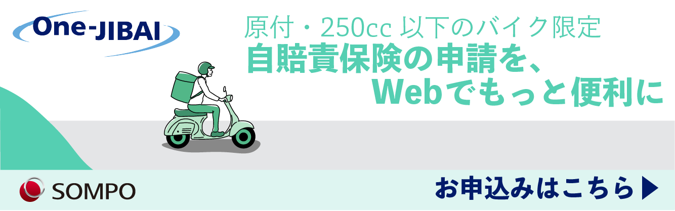 - 2024年1月から、当社におけるバイク自賠責保険のお取り扱いはWeb申し込みのみとさせていただいております。