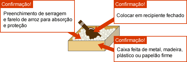 - Em cada recipiente utilizado, embalar em caixa firme com material de proteção para absorção de líquido em caso de danificação do mesmo.