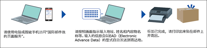 关于伴随 Electronic Advance Data(EAD)义务化的寄件为提高安全性和通关效率,万国邮政公约规定,必须事先向目的地国家或地区的海关以电子数据的形式发送寄出人或收件人的地址和姓名及内容物等信息。向海外寄送物品等(可能被海关检查的物品)时,需要使用可以发送EAD的“国际邮件我的页面服务”。将无法通过手写邮寄单进行寄送。