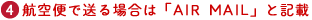 - グリーティングカードの場合は、さらに「Greeting Card」(または「New Year's Card」、「X'mas Card」)と黒色か青色で記入するか、郵便局の窓口でその旨をお申し出ください。
