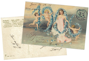 1900年前後、様々な年賀状が発売され、交換されていましたが、1800年代のものはごく稀にしか見つかっていません。ただ、欧米の年賀状ブームは、第一次世界大戦の始まりとともに、ほとんどその姿を消したと言われています。