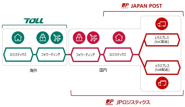 グループ会社によるBtoB国際物流サービスのご案内日本郵便株式会社は、グループ会社であるJPロジスティクス株式会社およびトールグループを通じ、法人のお客さまの物流をグローバルにサポートしています。日本発着・三国間のフォワーディング、国内ロジスティクスおよび国内輸配送を組み合わせ、グループ一体型のEnd to Endの物流サービスをご提案します。お客さまのサプライチェーンを支え、物流への多様なニーズに迅速かつきめ細やかにお応えします。