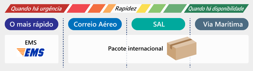 - Entrega de pacotes pequenos e leves com um preço mais baixo que o EMS. Você pode escolher a velocidade de envio.
