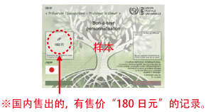 - 在日本国内兑换国际回信券时,可以兑换为160日元的邮政邮票。