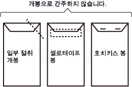 호치키스를 사용한 것이나 봉투의 한쪽 구석을 잘라낸 것은 개봉으로 간주하지 않습니다 |
