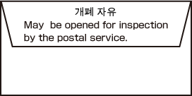 - 외관상 우편물이 밀봉된 우편물과 혼동되지 않게 접착 테이프를 사용한 봉투의 봉한자리 근처 또는 뚜껑부분에「개폐 자유」,「개폐 자재」,「개봉 가능」등 개봉할 수 있다는 취지를 표시하는 것 외에, 그 옆에 다음과 같은 기재를 한 것인 것.