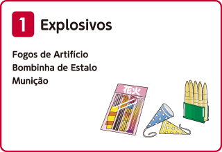 | Produtos perigosos de aviação | Pólvoras:Fogos de artifício, bombinha de estalo, bombas | |