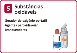 | Substâncias oxidáveis:Branqueadores, agentes peroxidáveis, aparelhos geradores de oxigênio de uso pessoal | ||