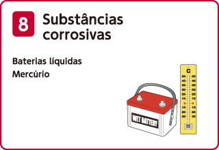| Substâncias corrosivas:Mercúrio, baterias | ||