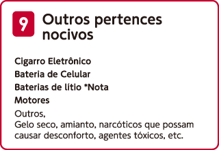 Há itens que são prejudiciais às operações de segurança dos vôos aéreos e podem representar perigo às instalações das aeronaves e ao aeroporto, bem como itens que podem ser prejudicias à saúde dos clientes, membros da tripulação e funcionários do aeroporto; estes itens são chamados de “Produtos perigosos da aviação”.