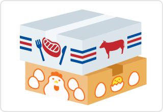 以下のような、肉製品・野菜・果物等の絵が入った包装材、箱を再利用することは、禁制品が封入されていることを想起させることから、お引き受け出来ないことがございます。