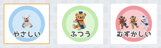 「やさしい」「ふつう」「むずかしい」の3つのレベルがあるよ。
