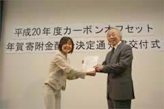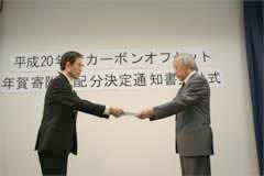 平成20年度カーボンオフセット年賀寄附金配分決定通知書交付式を行いました。
