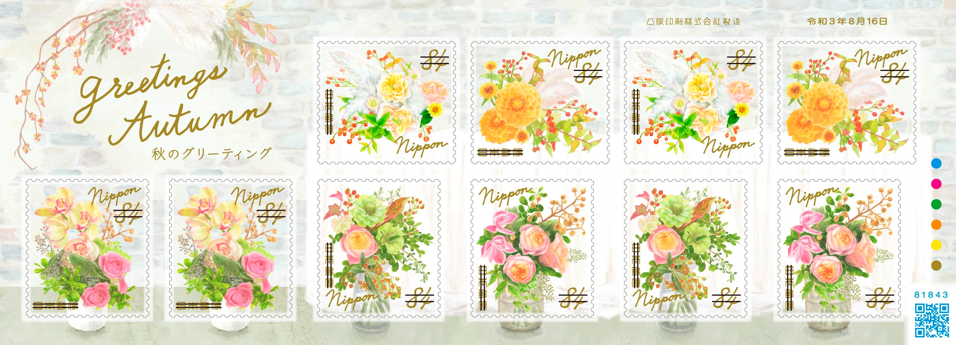 秋のおたよりに広くお使いいただける切手です。