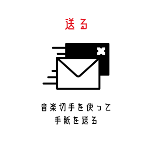 切手の上部をめくると「ありがとうの気持ちを伝える音楽」をお聞きいただけます。