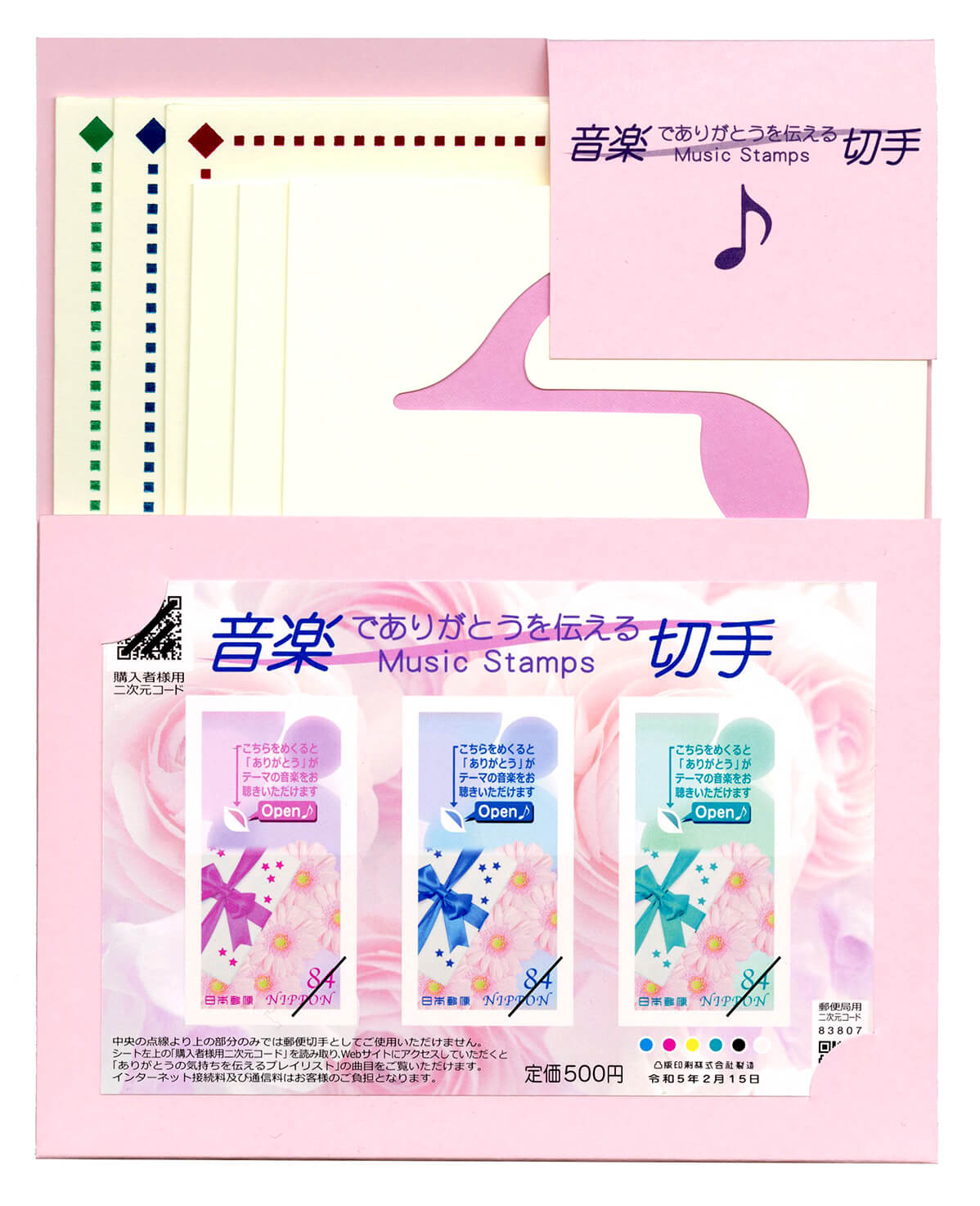 音楽を提供できる機能を持つ日本で初めての切手「音楽でありがとうを伝える切手」の関連商品として、販売品「音楽でありがとうを伝える切手 レターセット」を発売します。