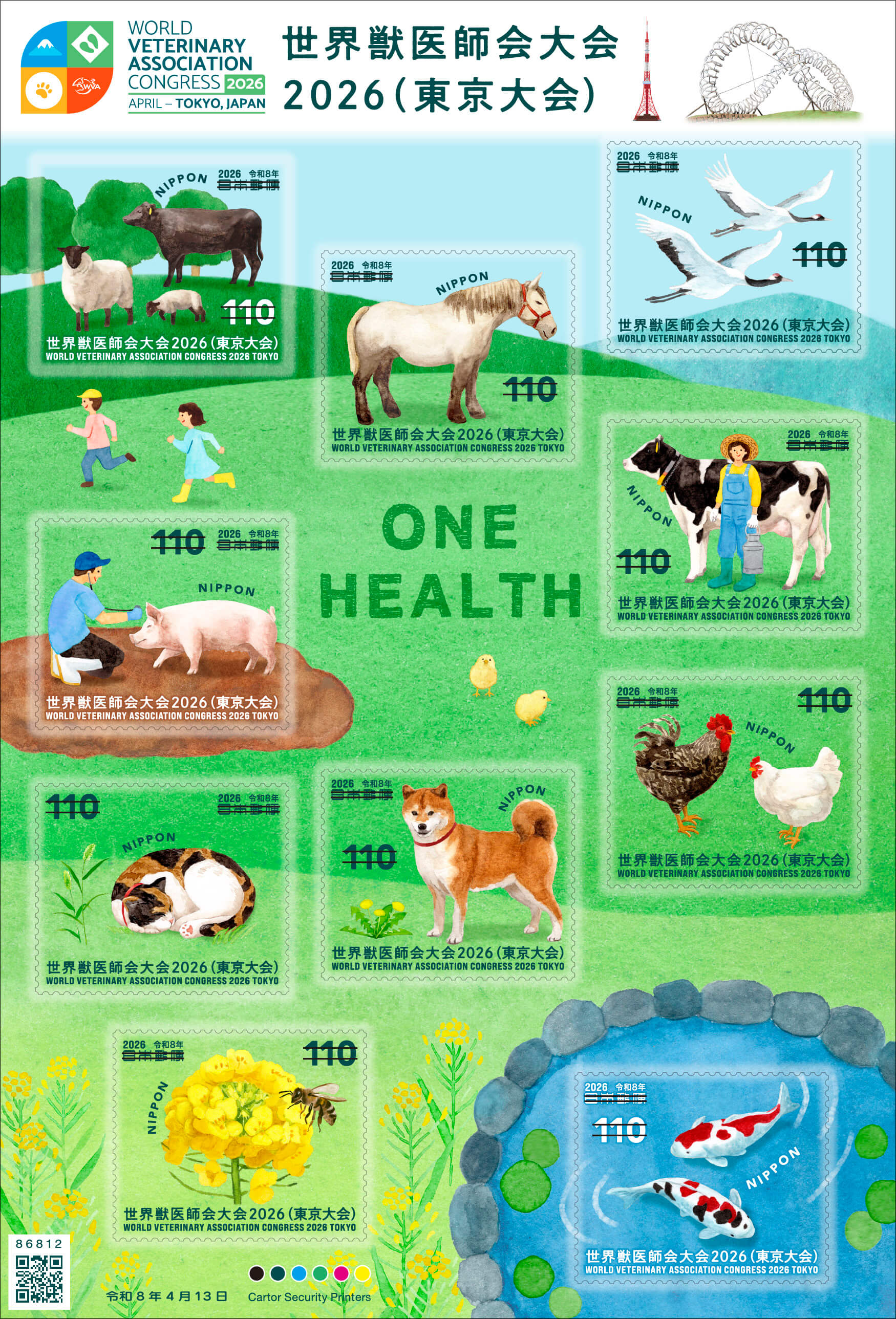 2026年4月に世界獣医師会大会2026(東京大会)が開催されることを記念して発行する切手です。