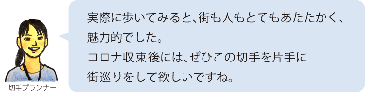 「街歩きの合間にこの切手を使って手紙を出して欲しい」という思いで、郵便モチーフを取り入れています。