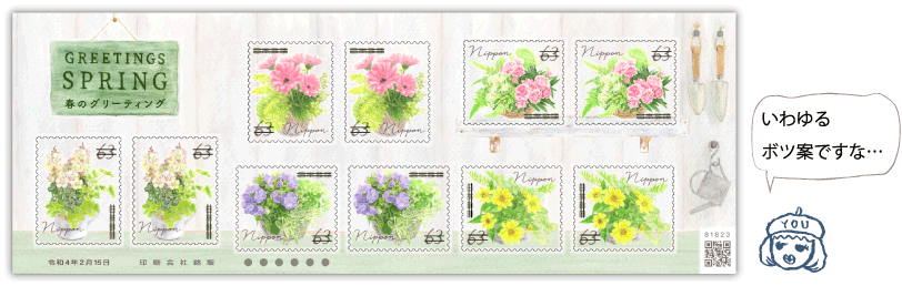 また、切手にあまり採用されていない小花も採り上げたいと思い、草花の寄せ植えとすることで、それぞれの魅力をより引き出せるのではないかと考えました。そして、園芸店を何店舗も見て回り、イメージを膨らませていきました。